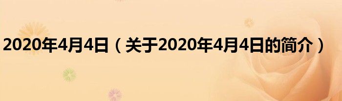 大家好,2020年4月4日,關于2020年4月4日的簡介很多人還不知道,現在讓我們一起來看看吧!