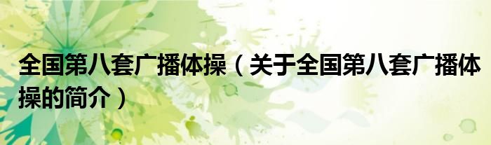 本文關(guān)于全國(guó)第八套廣播體操的簡(jiǎn)介就講解完畢,希望對(duì)大家有所幫助。