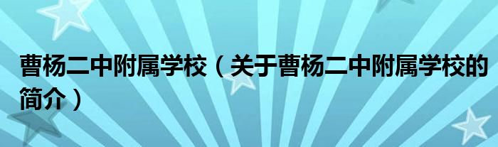 大家好,曹楊二中附屬學校,關于曹楊二中附屬學校的簡介很多人還不知道,現在讓我們一起來看看吧!