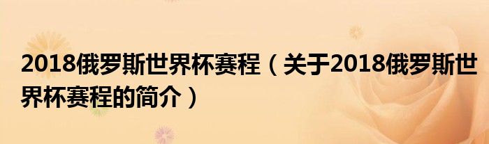 本文關(guān)于2018俄羅斯世界杯賽程的簡(jiǎn)介就講解完畢,希望對(duì)大家有所幫助。