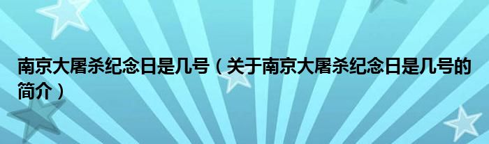 本文關于南京大屠殺紀念日是幾號的簡介就講解完畢,希望對大家有所幫助。