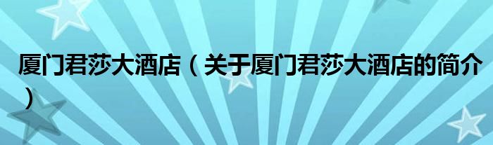 本文關(guān)于廈門君莎大酒店的簡(jiǎn)介就講解完畢,希望對(duì)大家有所幫助。