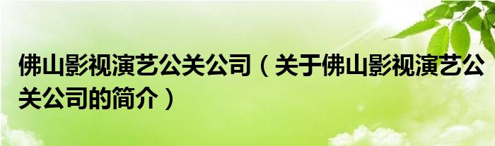 本文關(guān)于佛山影視演藝公關(guān)公司的簡介就講解完畢,希望對大家有所幫助。