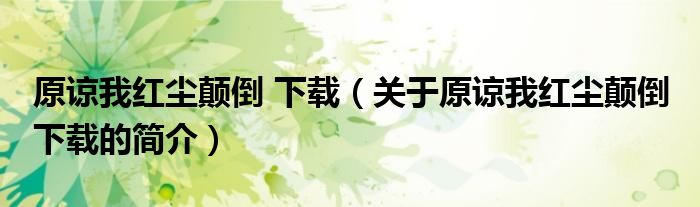 大家好,原諒我紅塵顛倒 下載,關于原諒我紅塵顛倒 下載的簡介很多人還不知道,現在讓我們一起來看看吧!