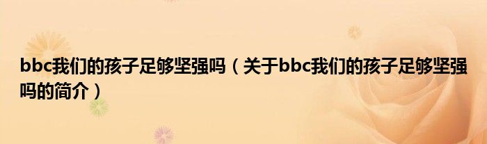 本文關于bbc我們的孩子足夠堅強嗎的簡介就講解完畢,希望對大家有所幫助。
