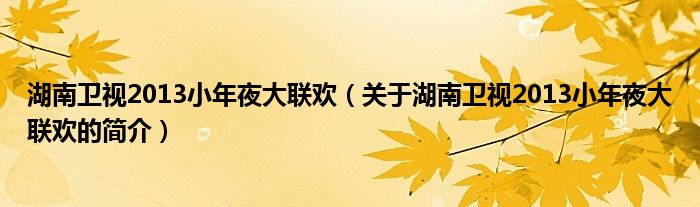 本文關于湖南衛視2013小年夜大聯歡的簡介就講解完畢,希望對大家有所幫助。