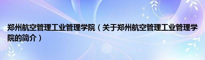 本文關于鄭州航空管理工業管理學院的簡介就講解完畢,希望對大家有所幫助。