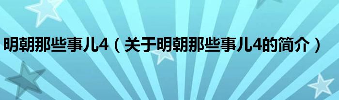 本文關于明朝那些事兒4的簡介就講解完畢,希望對大家有所幫助。