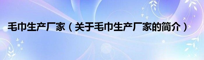 本文關于毛巾生產廠家的簡介就講解完畢,希望對大家有所幫助。