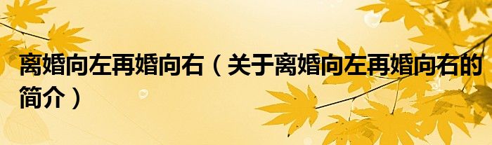 本文關于離婚向左再婚向右的簡介就講解完畢,希望對大家有所幫助。