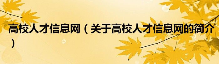 本文關(guān)于高校人才信息網(wǎng)的簡介就講解完畢,希望對(duì)大家有所幫助。