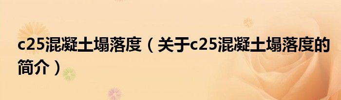 大家好,c25混凝土塌落度,關于c25混凝土塌落度的簡介很多人還不知道,現在讓我們一起來看看吧!