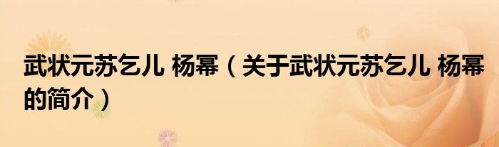 本文關于武狀元蘇乞兒 楊冪的簡介就講解完畢,希望對大家有所幫助。