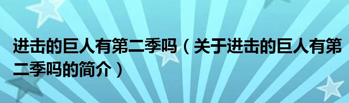 本文關于進擊的巨人有第二季嗎的簡介就講解完畢,希望對大家有所幫助。