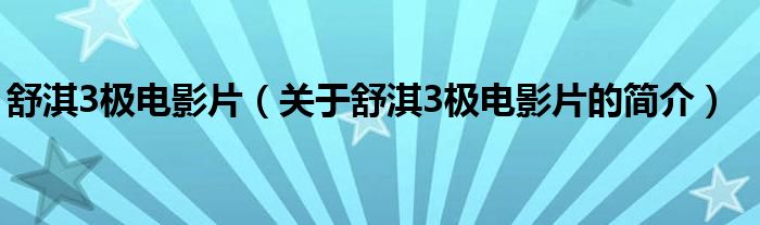 舒淇3極電影片(關于舒淇3極電影片的簡介)