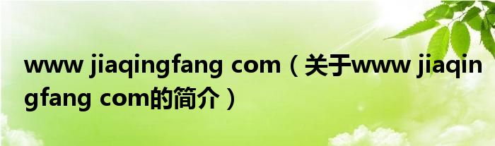 本文關于www jiaqingfang com的簡介就講解完畢,希望對大家有所幫助。