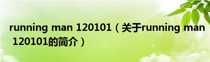 本文關于running man 120101的簡介就講解完畢,希望對大家有所幫助。