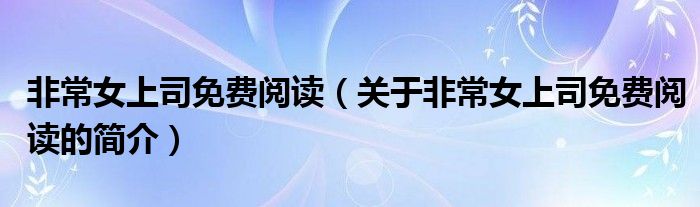 本文關于非常女上司免費閱讀的簡介就講解完畢,希望對大家有所幫助。