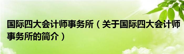 本文關于國際四大會計師事務所的簡介就講解完畢,希望對大家有所幫助。