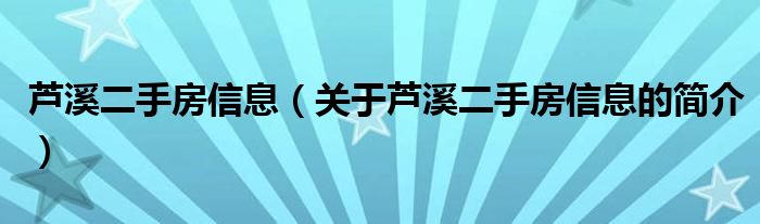 大家好,蘆溪二手房信息,關(guān)于蘆溪二手房信息的簡(jiǎn)介很多人還不知道,現(xiàn)在讓我們一起來(lái)看看吧!