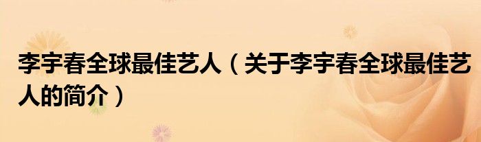 本文關于李宇春全球最佳藝人的簡介就講解完畢,希望對大家有所幫助。