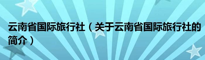 本文關(guān)于云南省國際旅行社的簡介就講解完畢,希望對大家有所幫助。