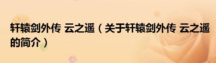 本文關于軒轅劍外傳 云之遙的簡介就講解完畢,希望對大家有所幫助。