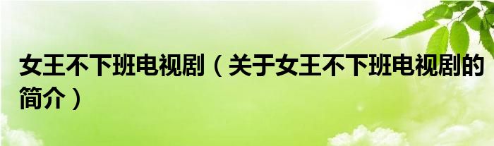 本文關于女王不下班電視劇的簡介就講解完畢,希望對大家有所幫助。