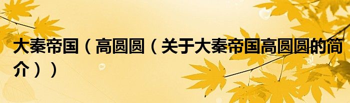本文關于大秦帝國 高圓圓的簡介就講解完畢,希望對大家有所幫助。