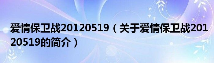 本文關于愛情保衛戰20120519的簡介就講解完畢,希望對大家有所幫助。