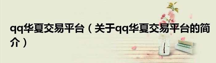 本文關(guān)于qq華夏交易平臺的簡介就講解完畢,希望對大家有所幫助。