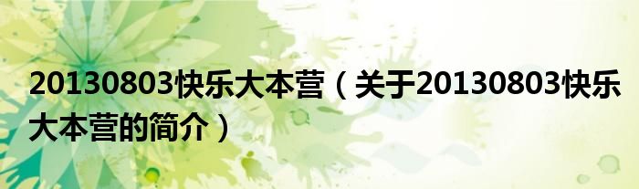 大家好,20130803快樂大本營,關于20130803快樂大本營的簡介很多人還不知道,現在讓我們一起來看看吧!
