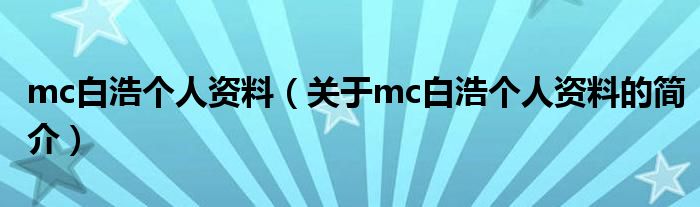 本文關于mc白浩個人資料的簡介就講解完畢,希望對大家有所幫助。
