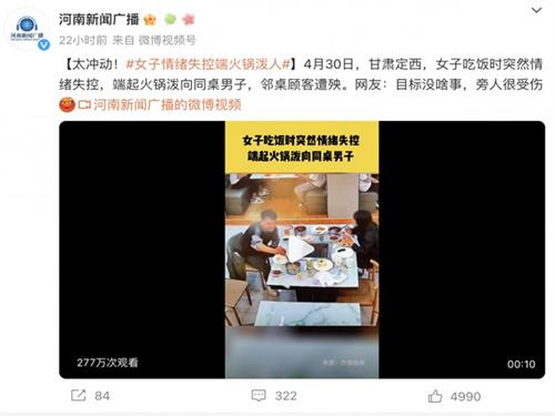 據(jù)報(bào)道,4月30日中午,一名女子與一男子在定西市一家火鍋店就餐。突然間,女子情緒失控,將火鍋中的熱油潑向同桌男子。男子被燙傷后立即離開,而女子則沖到鄰桌,將火鍋潑向了無辜的顧客。多名顧客被燙傷,其中一人傷情嚴(yán)重,被緊急送往醫(yī)院進(jìn)行治療。