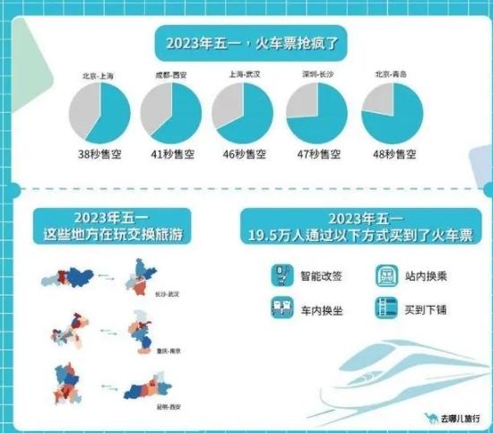今年五一期間的火車票太難搶了。在去哪兒平臺上,同時在線購買火車票的人數創下了歷史新高。五一假期車票放票的第一天,許多熱門線路的車票幾分鐘內就被搶購一空,即使增加了列車開行數量,也很快售罄,即使是凌晨發車的夜車也不例外。此外,五一期間出境游的機票預訂量也已恢復到了疫情前的水平。泰國曼谷、中國香港、韓國首爾、馬來西亞吉隆坡、中國澳門、新加坡、日本東京、泰國普吉、日本大阪和菲律賓馬尼拉是最受歡迎的目的地。