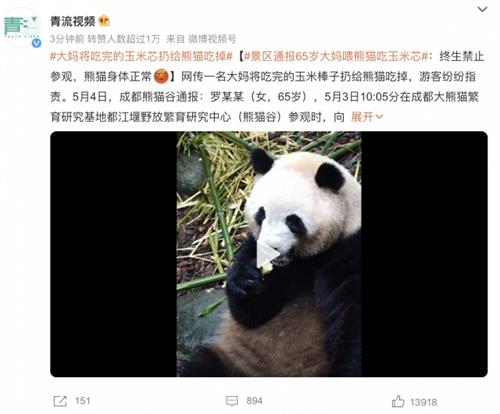近日,一則關于一名65歲大媽喂熊貓吃玉米芯的視頻在網上廣泛流傳,引起了社會各界的強烈譴責。據報道,這名大媽在成都熊貓谷參觀時,將吃完的玉米棒子扔給了正在室外活動的大熊貓,被其他游客指責不文明。針對此事,成都熊貓谷方面于5月4日發布通報,表示將對這名大媽進行終身禁止參觀的處理,并稱大熊貓梅蘭身體情況正常無異樣。