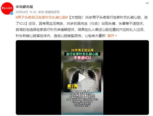 這起事件再次提醒人們,對于自行針灸或其他醫療行為,一定要慎重選擇,如果沒有相關的醫學知識和技能,最好不要自行操作。如果出現身體不適癥狀,應該及時就醫,聽從專業醫生的建議和治療方案。