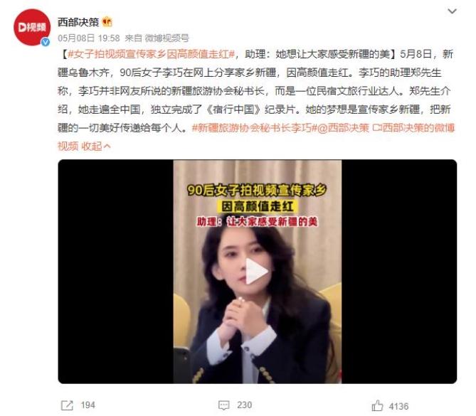 近日,一位名叫李巧的90后女子在網(wǎng)絡(luò)上因其高顏值而走紅,她以自己獨特的方式宣傳著家鄉(xiāng)新疆的美麗。與她合作的助理鄭先生透露,李巧并非網(wǎng)友所誤傳的新疆旅游協(xié)會秘書長,而是一位民宿文旅行業(yè)的達(dá)人。