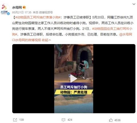 近日,一段視頻曝光了江蘇徐州九頂山野生動物園萌寵之家工作人員虐待小狗的情況。視頻顯示,兩名工作人員在訓練小狗進行騎車表演時,不停地呵斥并抽打小狗。這一事件引起了公眾的關注和憤慨。