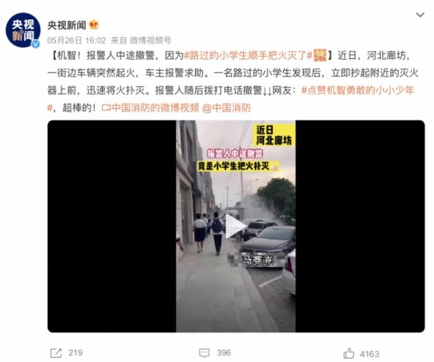 近日,在河北廊坊市發生了一起街邊車輛起火事件,車主緊急報警求助。然而,一個機智勇敢的小學生路過現場,立刻注意到火勢,毫不猶豫地拿起附近的滅火器,快速撲滅了火焰。這個英勇的舉動讓報警人意識到危險已被解決,于是立即撤銷了報警。網友們紛紛點贊這個聰明勇敢的小小英雄,稱贊他的表現超級棒!