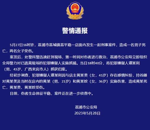 5月28日,廣西荔浦市發生一起嚴重的刑事案件,警方于當日發布了警情通報,詳細描述了事件的發生經過。