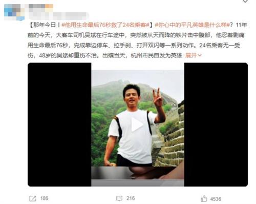 那年的今天,一位平凡的大客車司機吳斌用他生命最后的76秒,完成了一系列驚人的動作,救下了24名乘客的生命。你心中的平凡英雄是什么樣的?讓我們一起回顧并敬佩這位英勇的吳斌。