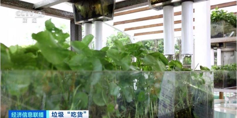 據測算,1克黑水虻的蟲卵孵化出的幼蟲,可以處理約10公斤的餐廚垃圾和其他有機廢棄物,還能產生1.5公斤到2公斤的鮮蟲和2公斤到4公斤的有機肥料。此外,該基地還探索出一套"魚菜共生系統",實現了廚余垃圾的綠色循環利用。