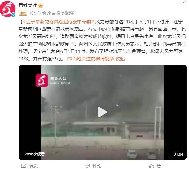 【遼寧阜新遭受龍卷風襲擊:行駛中的車輛被卷起,風力高達11級】