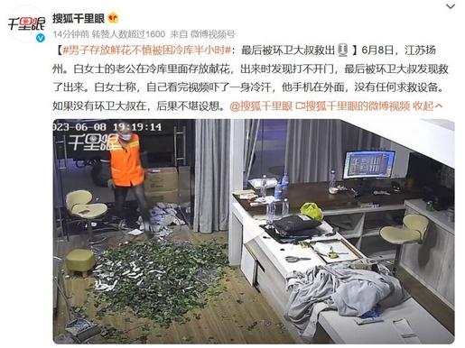 近日,江蘇揚州發生了一起男子被困冷庫的事件,幸得環衛大叔的及時發現和救援,才使得事態沒有進一步惡化。據報道,事發當天,一位叫白女士的女性的丈夫在冷庫里存放鮮花時,不慎被門鎖困住,無法自行開啟門戶。經歷了長達半小時的困頓后,幸運的是一名環衛大叔發現了他的困境并及時展開了救援行動。