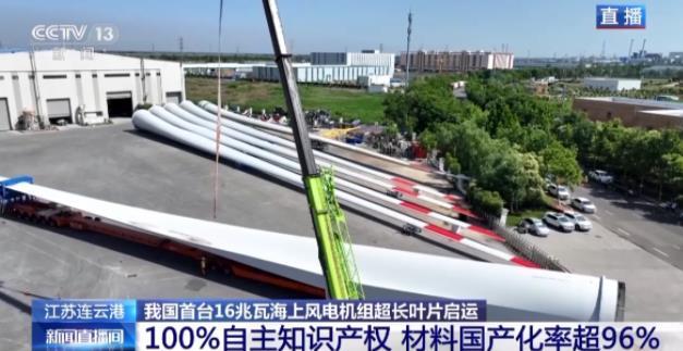 在江蘇連云港,我國自主知識產權的123米超長海上風電葉片順利通過全部測試,準備進行正式安裝。