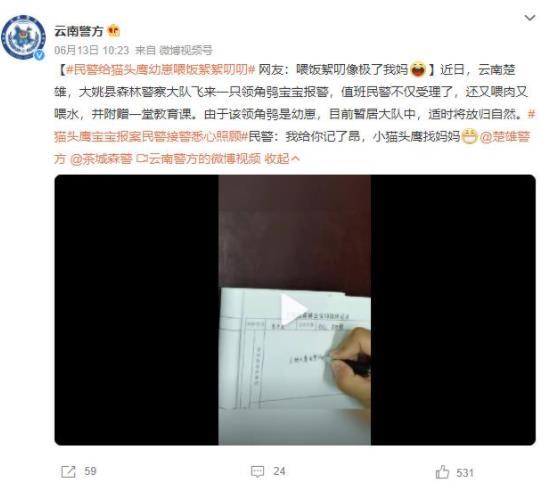 最近,在云南楚雄大姚縣森林警察大隊,一只領角鸮寶寶飛到這里向警方報警。這只幼鳥不僅得到了警方的熱情接待,還被喂食和提供水源,同時還進行了一堂特別的教育課程。由于這只領角鸮還只是個幼崽,目前它暫時寄養在森林警察大隊中,待時機成熟后將被釋放回自然環境。民警表示:“我已經為你登記了,小貓頭鷹在找媽媽。”