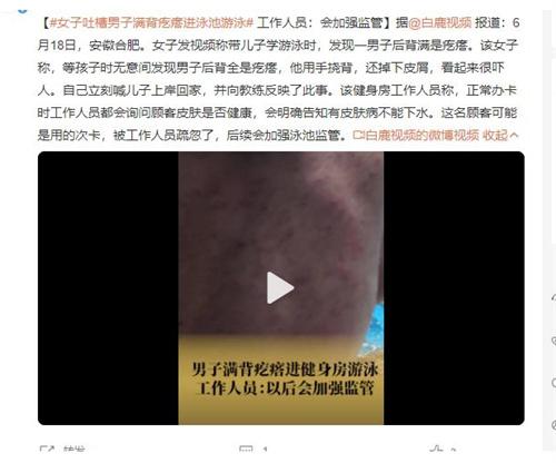 據@白鹿視頻報道,發生在安徽合肥的一起事件引起了廣泛關注。一位女子在帶兒子學游泳時偶然發現一名男子的后背布滿了疙瘩,并且他不停地用手撓背,還掉下了皮屑,給人留下了極其不良的印象。