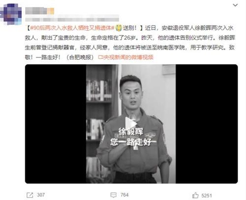 近日,安徽省一位退役軍人徐毅暉的英勇事跡感動(dòng)了許多人。這位年僅26歲的徐毅暉兩次毅然決然地投身水中,救起了他人,但卻以寶貴的生命為代價(jià)。昨天,徐毅暉的遺體告別儀式在沉痛的氛圍中舉行。然而,在喪失了生命的同時(shí),徐毅暉的善舉還將繼續(xù)發(fā)揮作用。他生前登記捐獻(xiàn)器官,并經(jīng)過(guò)家人的同意,他的遺體將被送至皖南醫(yī)學(xué)院,用于教學(xué)研究,以回饋社會(huì)。