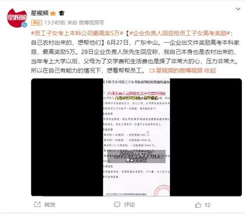 近日,廣東中山的一家企業(yè)發(fā)布文件,宣布獎勵員工子女在高考中被錄取為本科的家庭,最高獎勵金額為5萬元。這一舉措引起了廣泛關(guān)注。在28日,該企業(yè)的負(fù)責(zé)人張先生回應(yīng)了此事,他表示自己本身也是農(nóng)村出身,在考上大學(xué)后,為了支付學(xué)費和生活費,父母付出了巨大的努力和壓力。因此,他希望在自己有能力的情況下,能夠幫助員工和他們的子女。